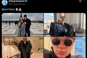曼城在近期迎来一周一赛,瓜帅也为球员们放了短假,哈兰德晒出自己和女友在巴黎的游玩照,并配文:“谢谢巴黎”。